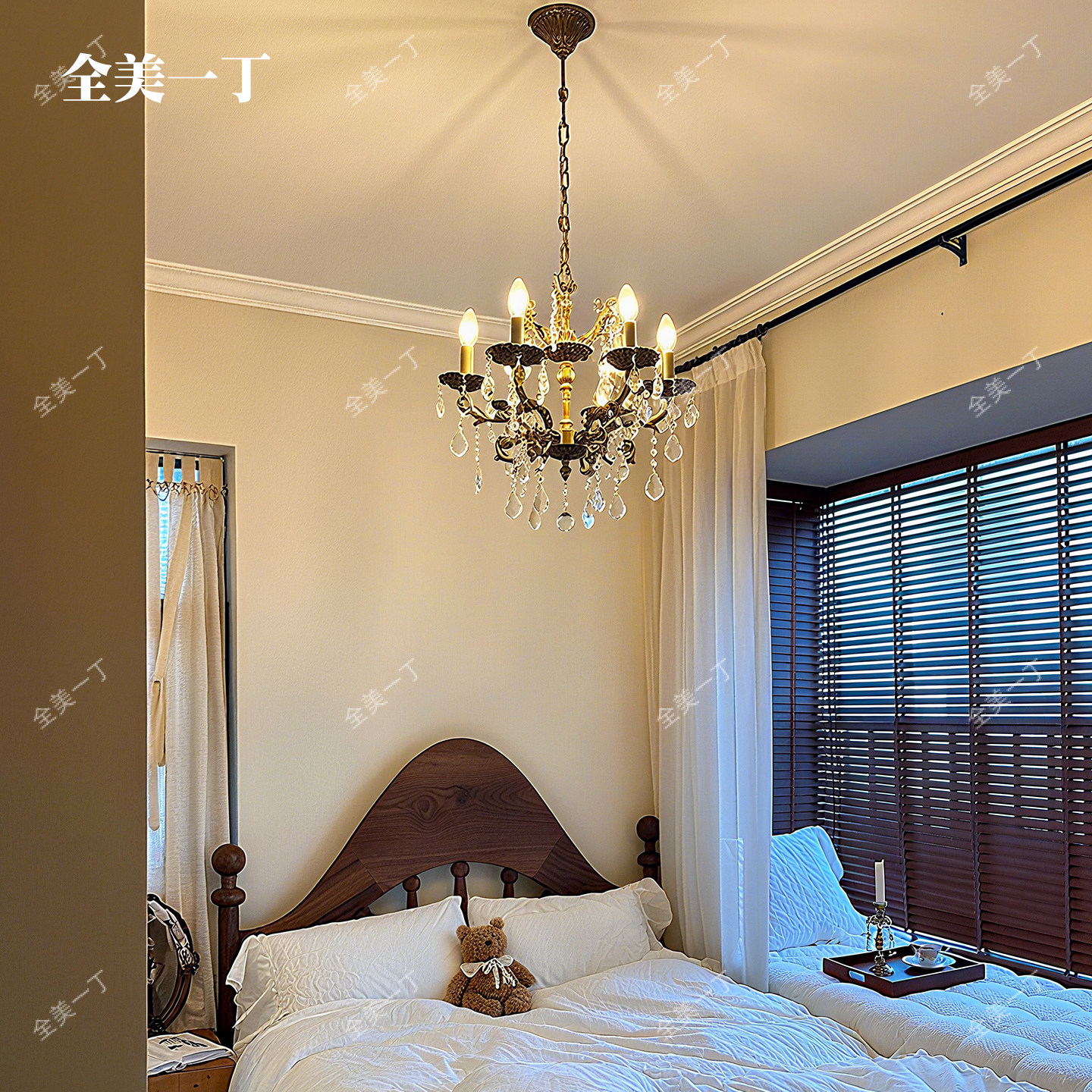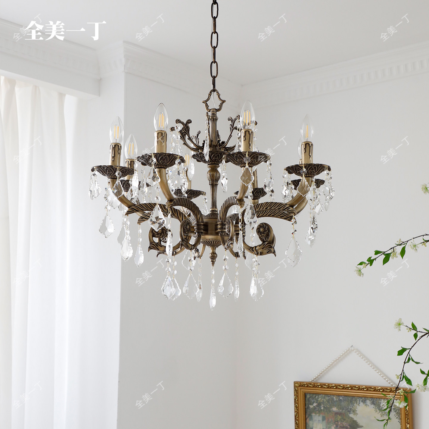 全美一丁 轻奢客厅吊灯蜡烛水晶房间灯主卧室灯复古餐厅灯具 美式由