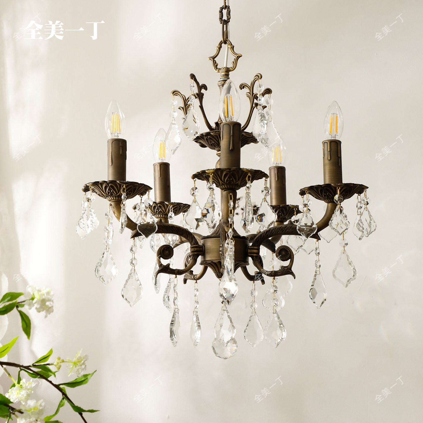 全美一丁 轻奢客厅吊灯蜡烛水晶房间灯主卧室灯复古餐厅灯具 美式