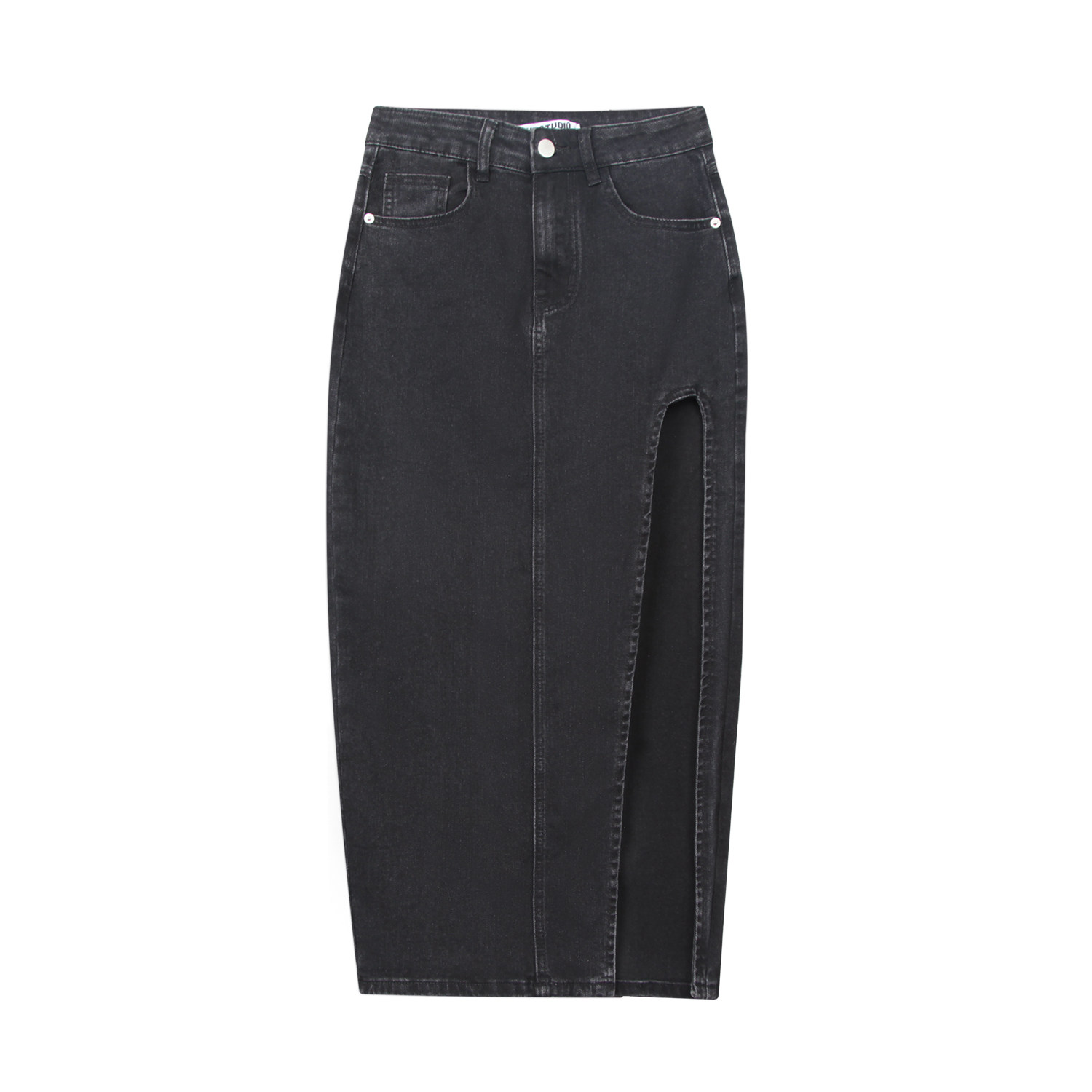 为您提供商品A字裙炸街辣妹纯色高腰牛仔包臀半身裙 性感网红不规则开衩中长款的详细介绍,