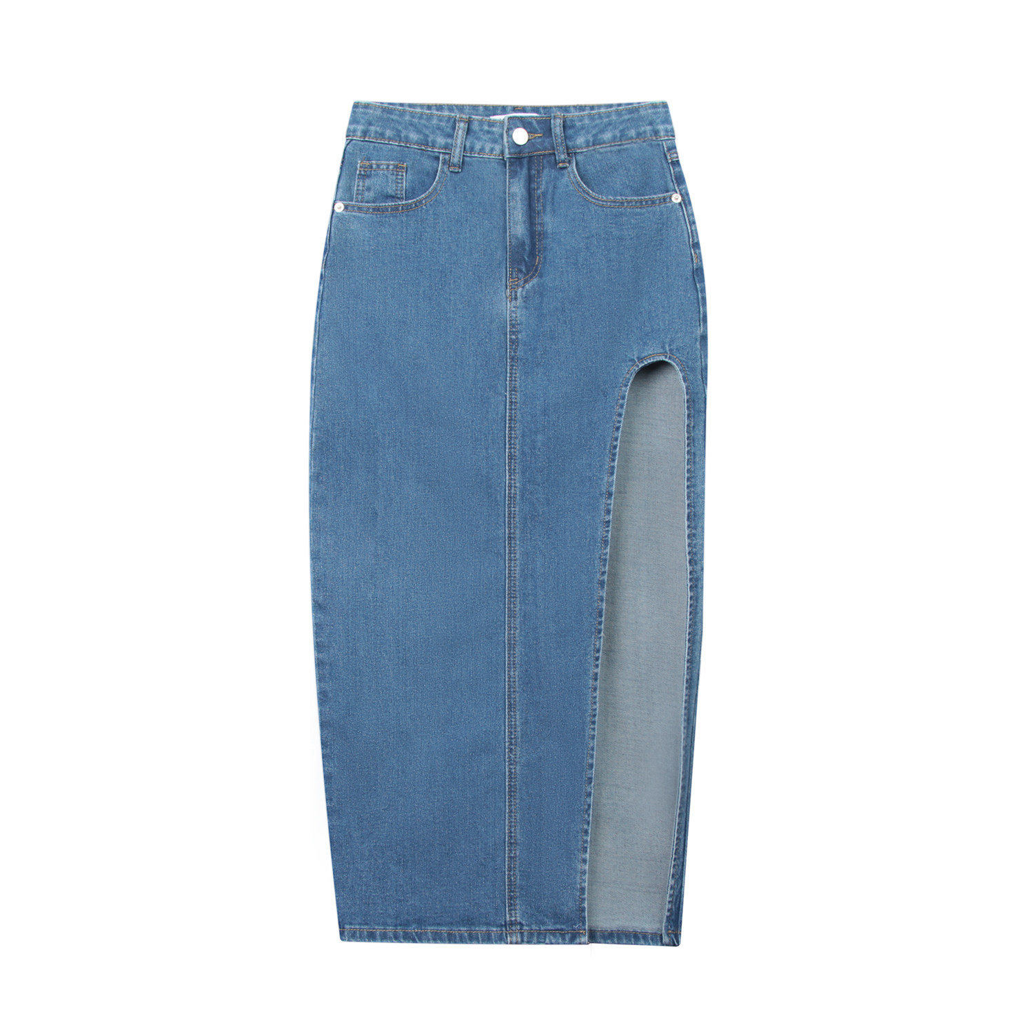 A字裙炸街辣妹纯色高腰牛仔包臀半身裙 性感网红不规则开衩中长款