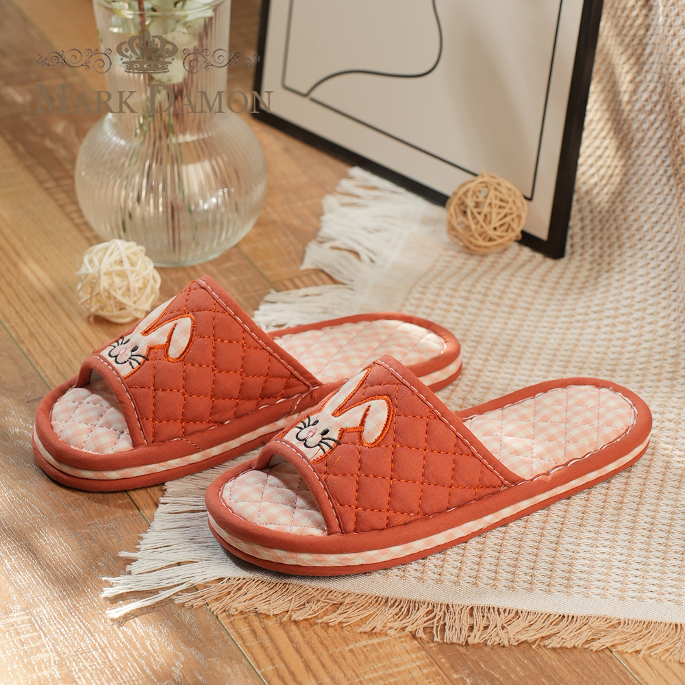 新款 纯棉布艺本命年兔子亲子情侣静音加厚三层底家居室内地板拖鞋