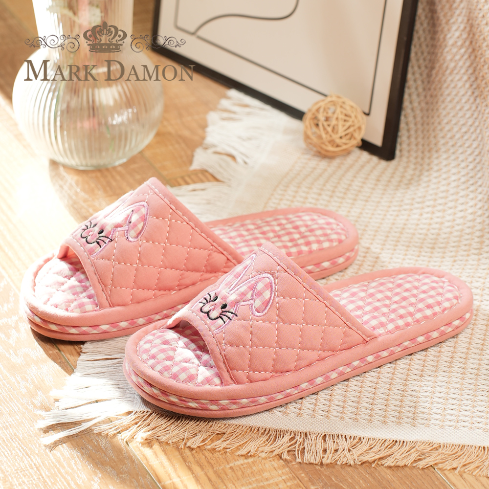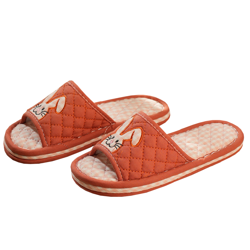 新款 纯棉布艺本命年兔子亲子情侣静音加厚三层底家居室内地板拖鞋由