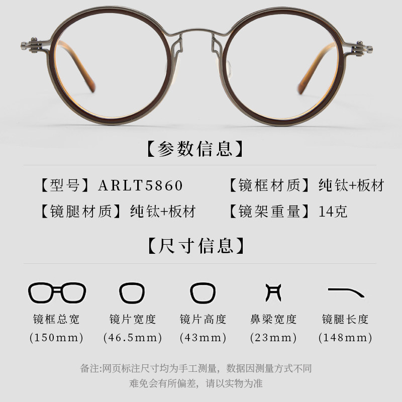为您提供商品近视超轻纯钛圆框大脸钛架可配度数茶色眼睛框 木川150mm眼镜男款的详细介绍,