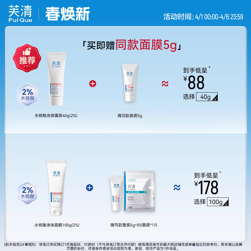 为您提供商品芙清水杨酸深层去闭口黑头粉刺非果酸淡痘印清洁毛孔涂抹面膜的详细介绍,