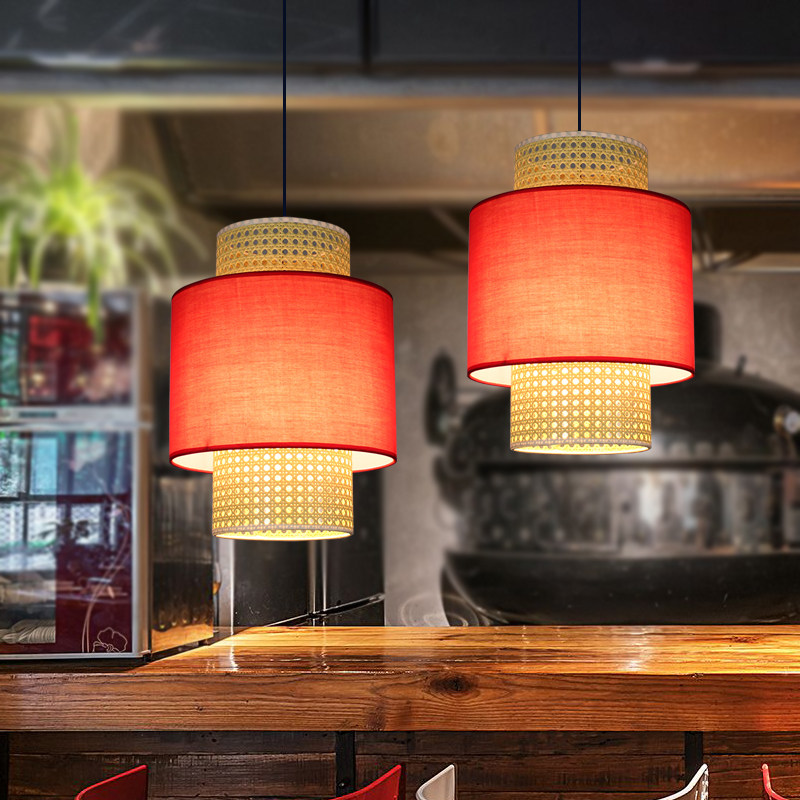 中式 灯 宴会厅红吊灯餐饮火锅店灯笼简约藤艺餐厅民宿酒店竹编日式