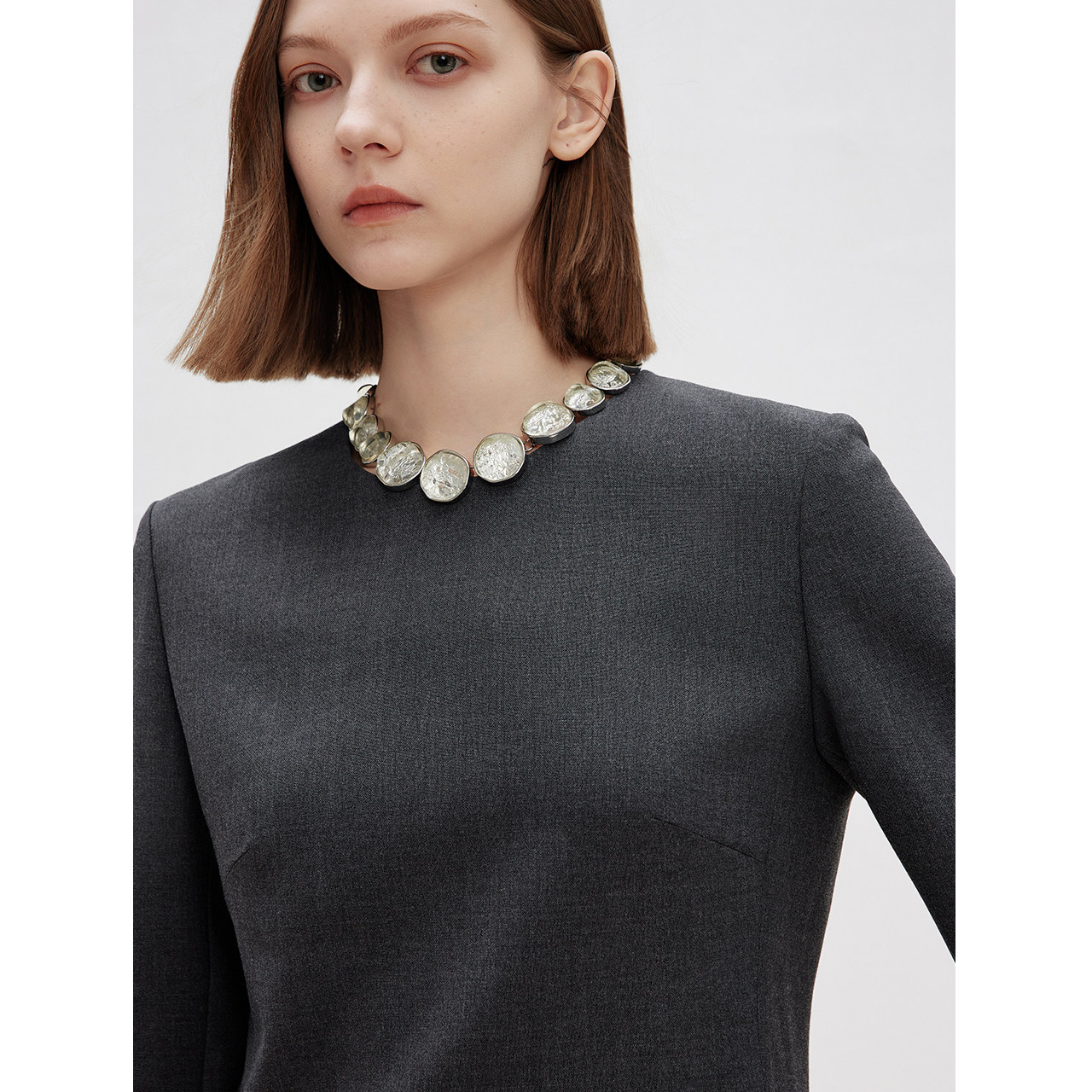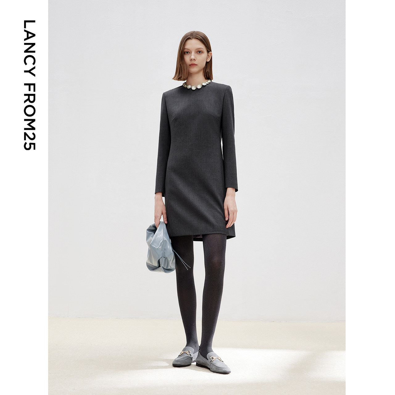 朗姿25纯羊毛法式 裙子春季 新款 显瘦连衣裙 复古高级感长袖由