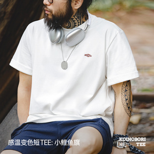 马登工装 T恤复古宽松重磅文字印花纯棉体恤男夏 温感变色幸运短袖