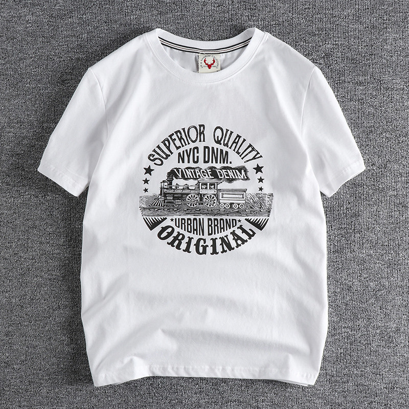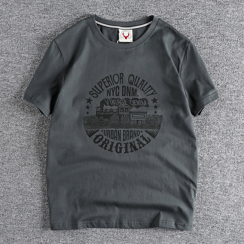 复古火车头图案短袖 男t恤水洗奥戴尔棉舒适日常百搭青年T 美式 夏季