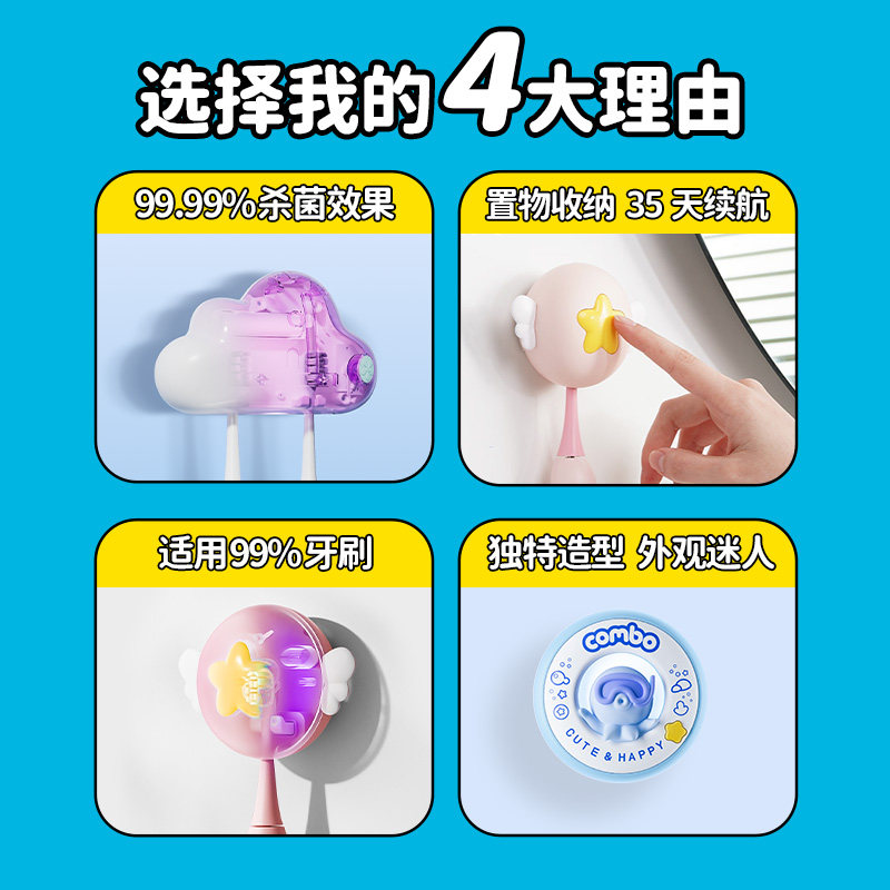单双人 COMBO牙刷消毒器挂件紫外线杀菌仓卫生间收纳置物架壁挂式由