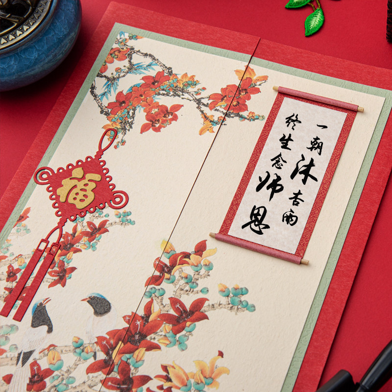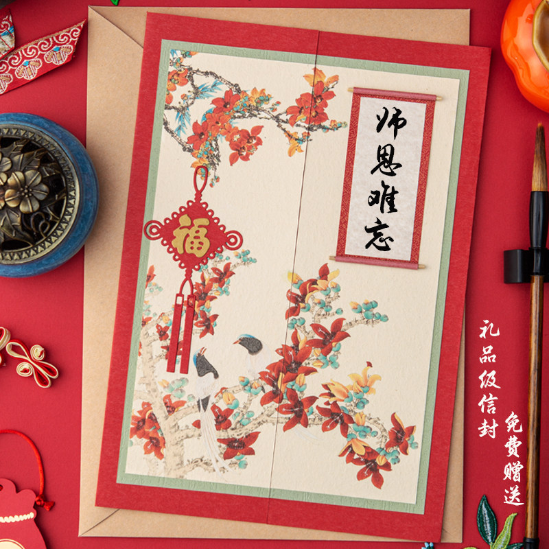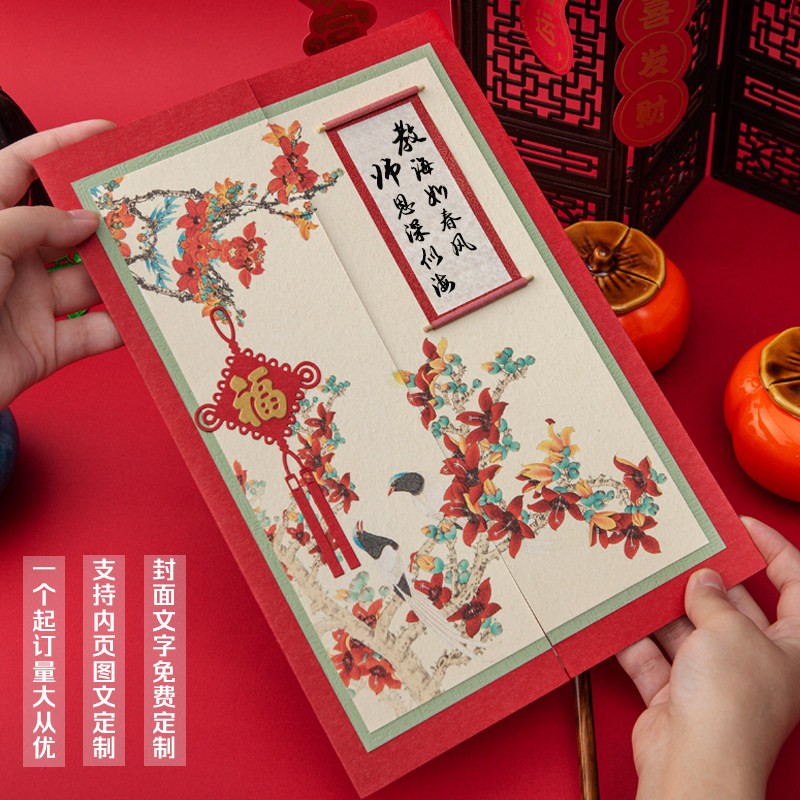 为您提供商品A4中国风贺卡手工定制退休欢送留言纪念结婚高级感谢信生日大卡片的详细介绍,