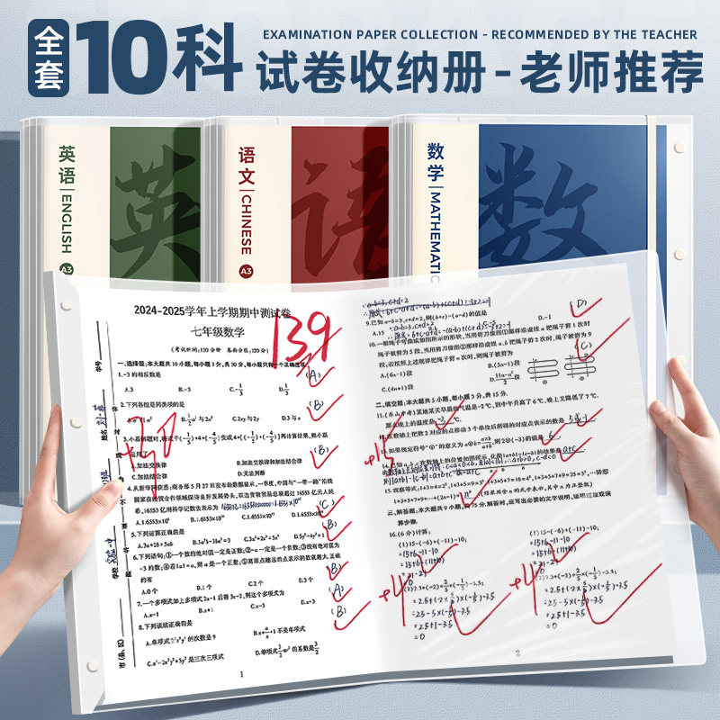 A3试卷收纳袋学生用整理卷子资料册多层透明插页小学初中生高中生考卷夹科目分类夹收纳文件夹本高颜值大容量