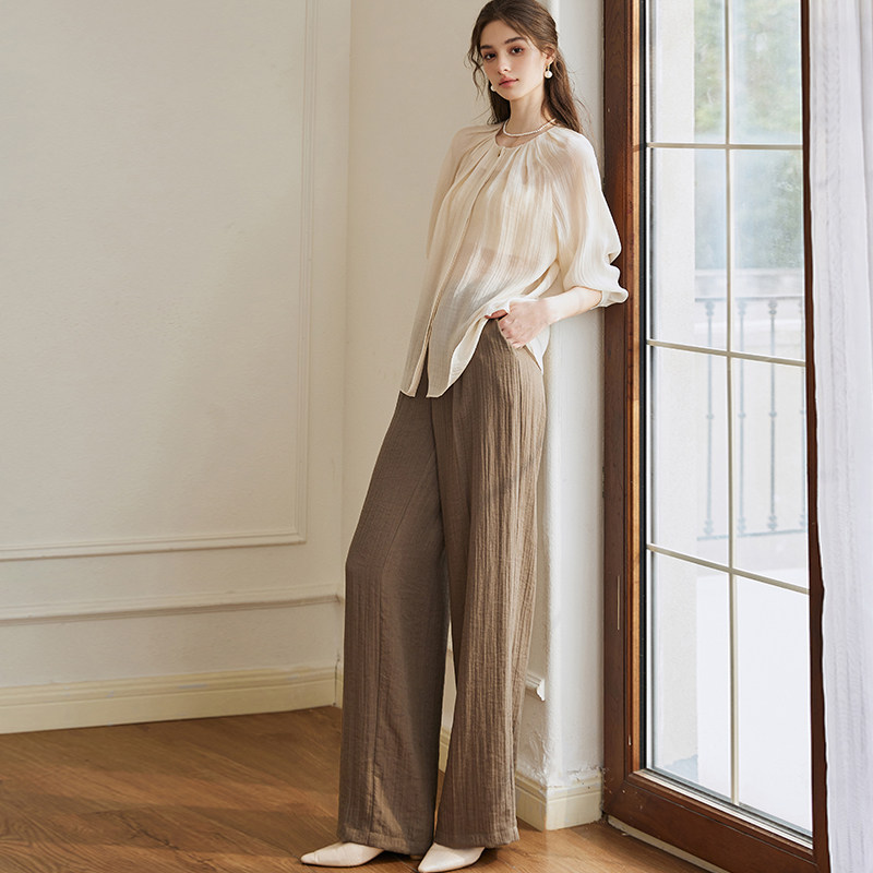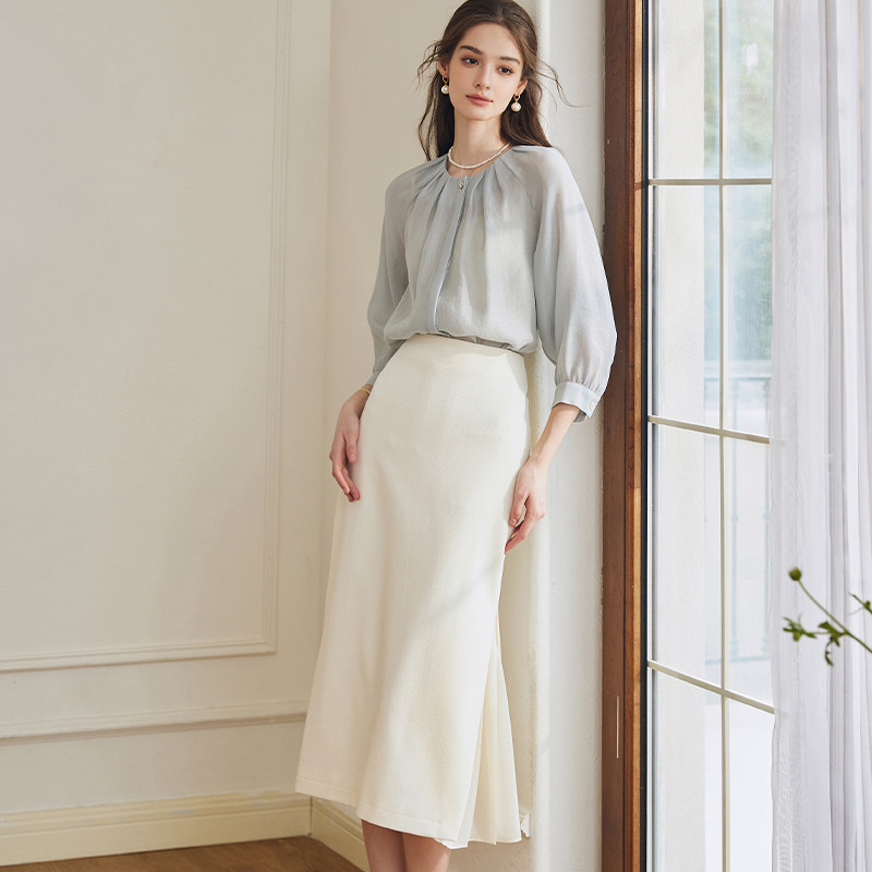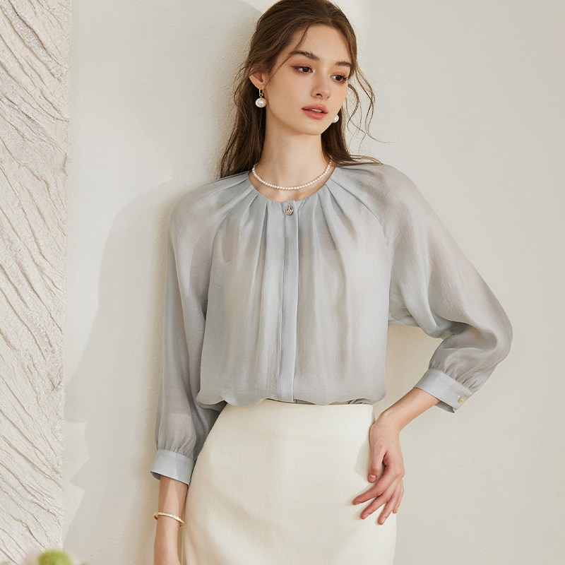 为您提供商品女春气质通勤防晒衬衣七分袖 圆领上衣10244 杏色轻薄衬衫 罗衣法式的详细介绍,
