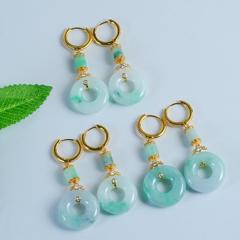 为您提供商品S925银镶天然翡翠A货飘阳绿甜甜圈子母扣银镶耳环送妈妈送爱人的详细介绍,