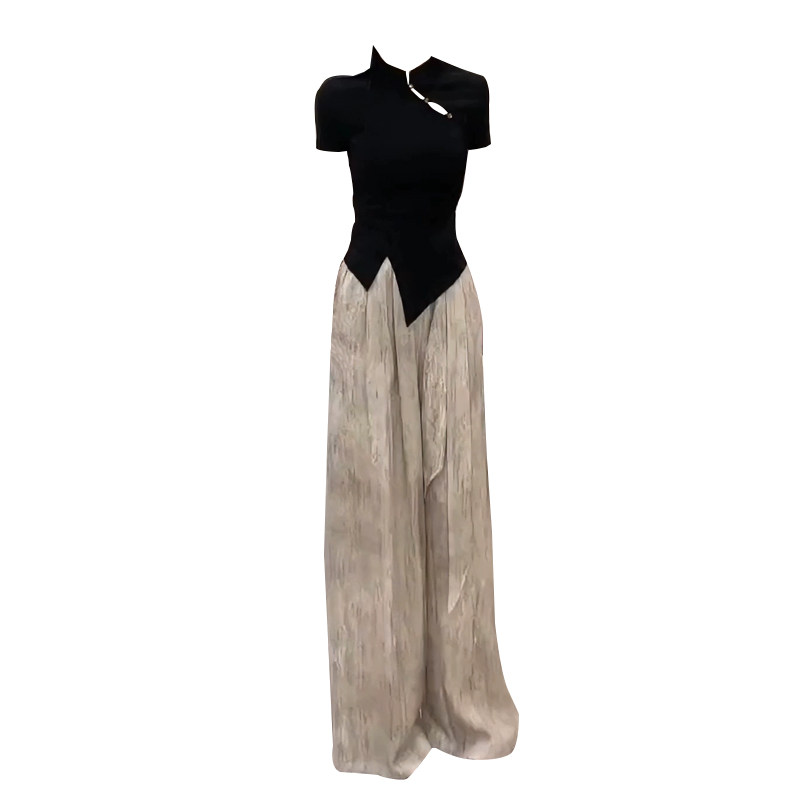 为您提供商品女夏季 国风套装 胖mm新中式 两件套 气质显瘦短袖 上衣阔腿裤 时尚 大码的详细介绍,