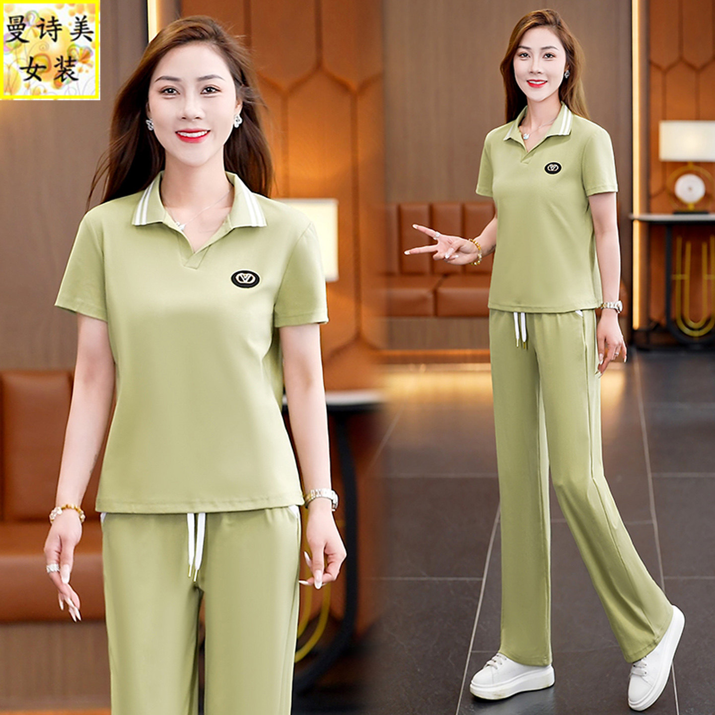 时尚 翻领运动休闲套装 女2026年夏季 新款 跑步服两件套 洋气透气薄款