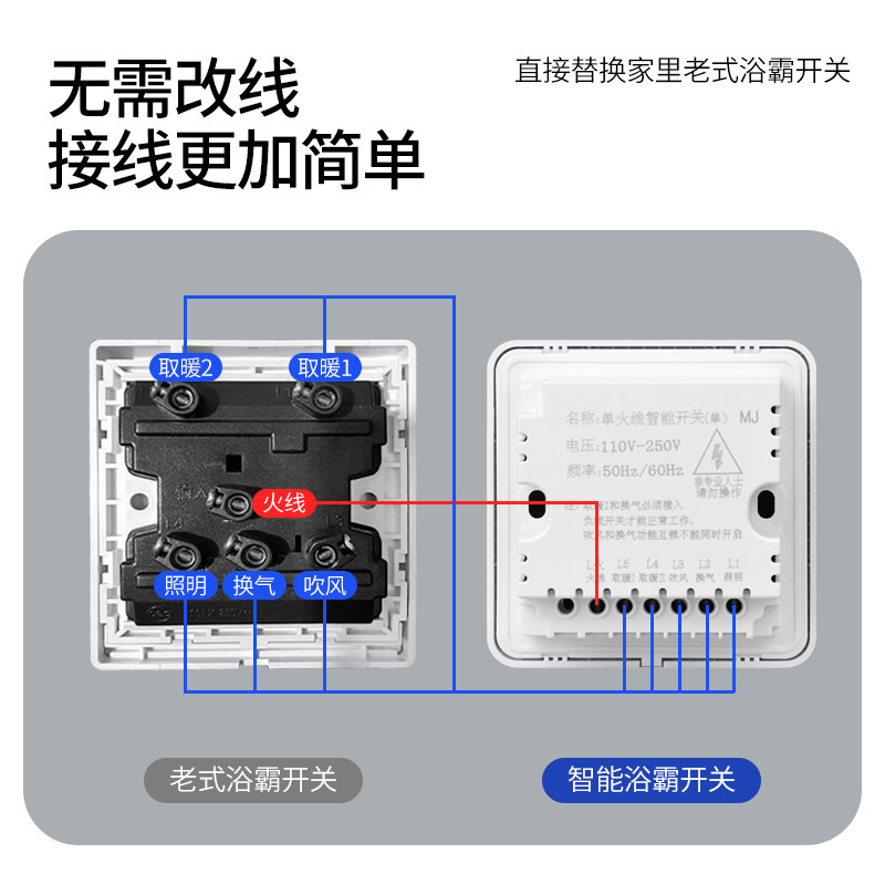 防水五开单控浴霸开关专用通用滑盖浴室卫生间风暖5合一四开面板