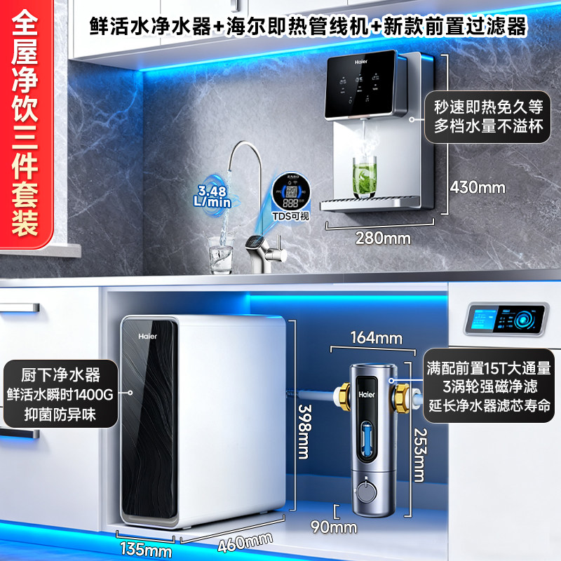海尔鲜活水1200G净水器家用厨下直饮RO反渗透净热一体管线机套装