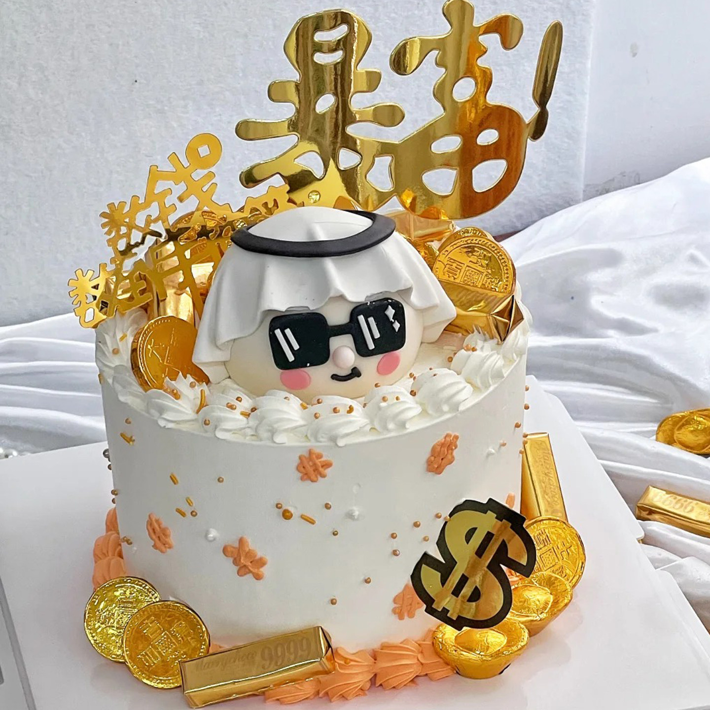 饰暴富金币插件配件 网红中东迪拜土豪头顶一块布全球我最富蛋糕装由