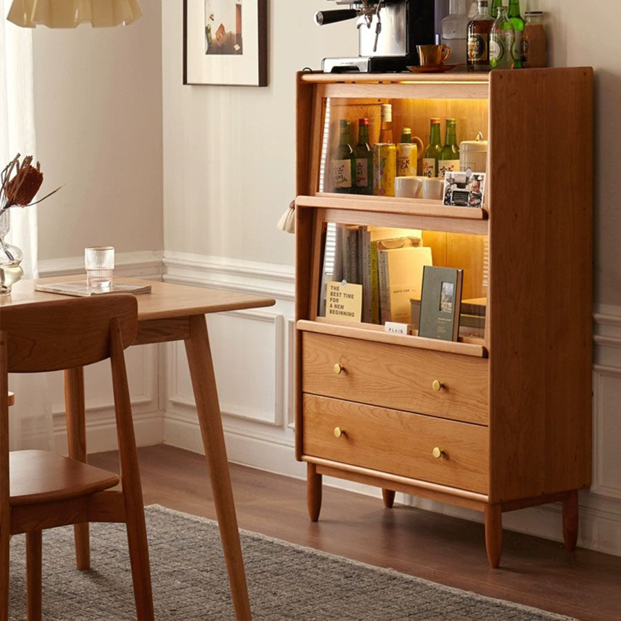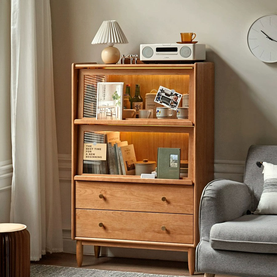 出乎生活镜湖展示柜单个书柜樱桃木小户型玻璃客厅电视边柜储物