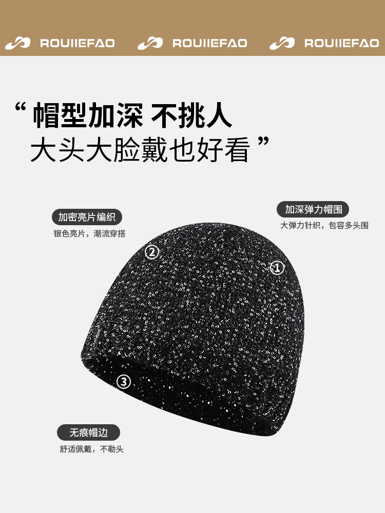 为您提供商品亮片针织帽女辣妹百搭弹力包头冷帽子 ROUIIEFAO小香风jennie同款的详细介绍,