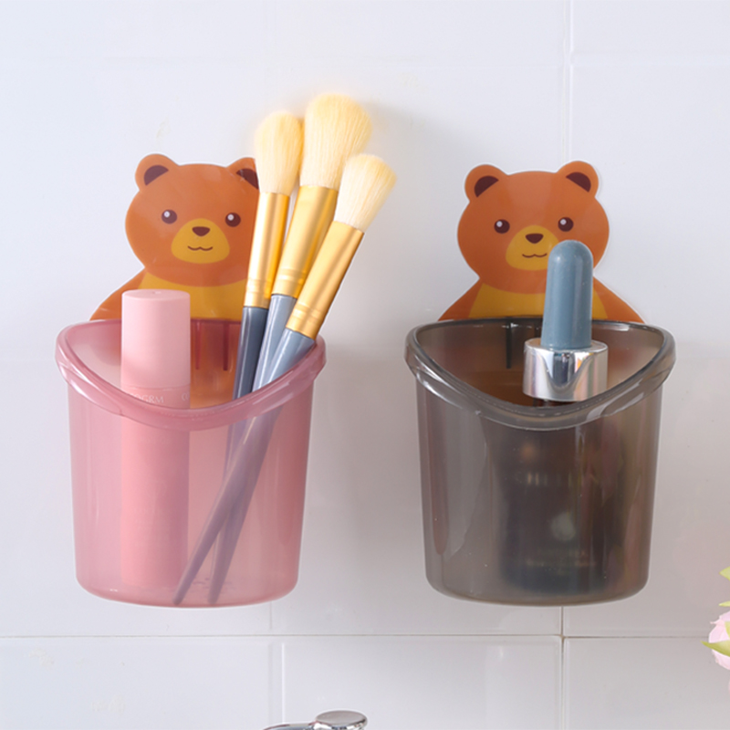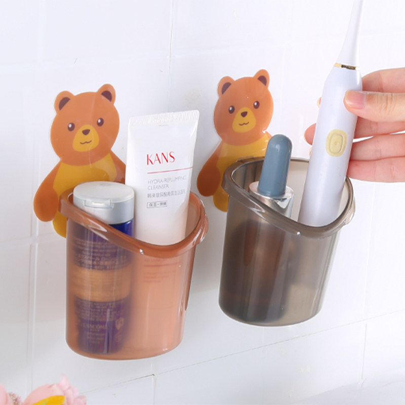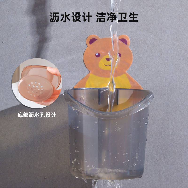 壁挂 小熊沥水置物杯架免打孔牙刷置物架宿舍收纳卫生间挂架挂墙式