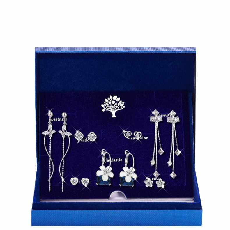 高级耳钉情人节礼品实用 纯银耳钉女生日礼物送女生一周银耳环套装