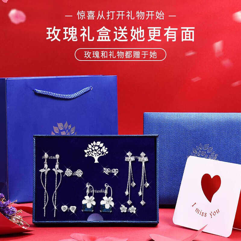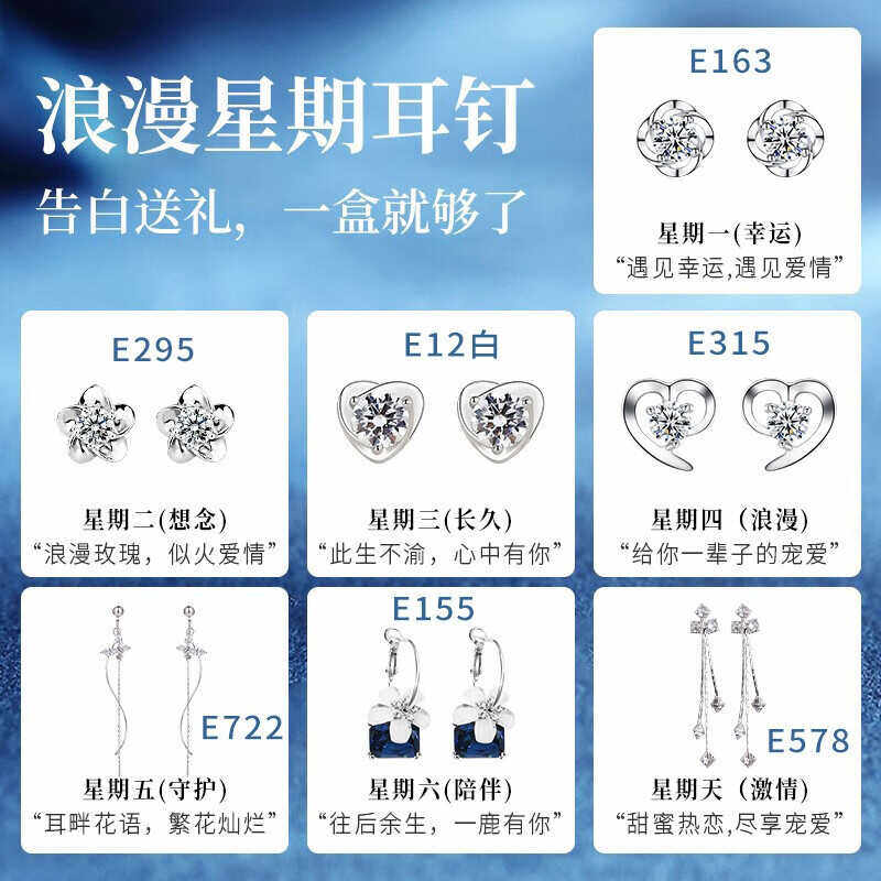 为您提供商品高级耳钉情人节礼品实用 纯银耳钉女生日礼物送女生一周银耳环套装的详细介绍,