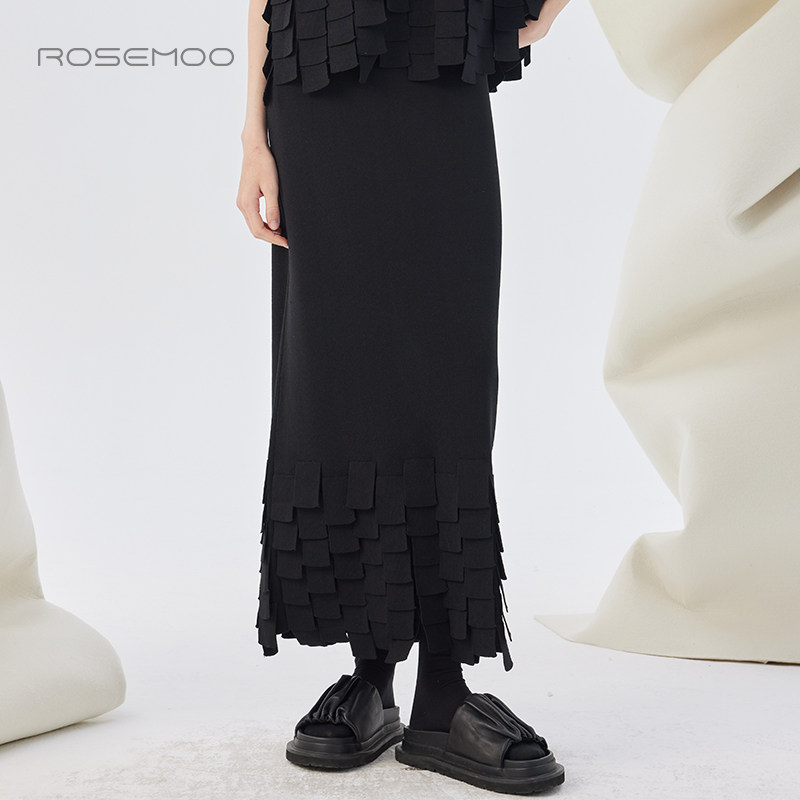 干爽多片流苏松紧腰半裙RSS3QP143A 容子木ROSEMOO25秋商场同款