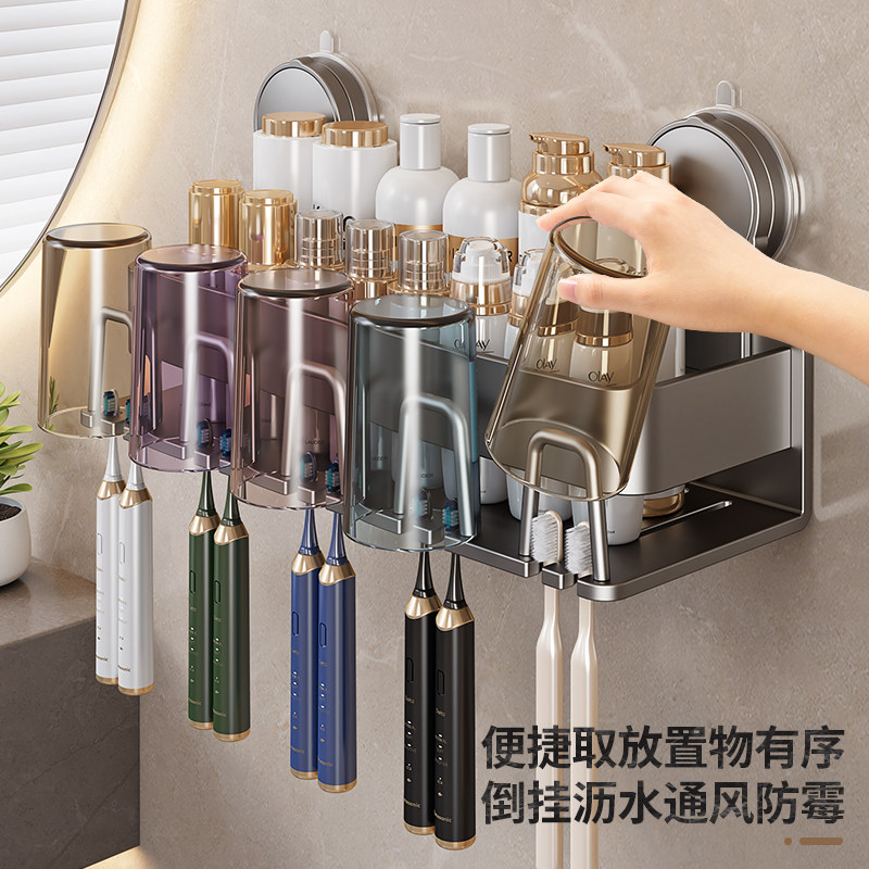 吸盘电动牙刷置物架免打孔卫生间浴室漱口杯牙刷牙膏化妆用品收纳