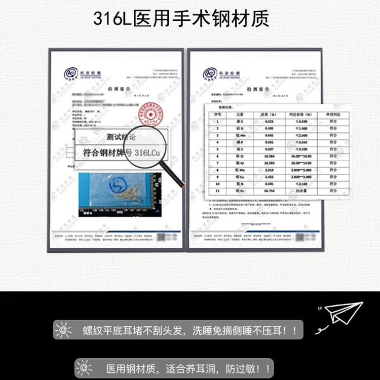 F136钛合金耳钉医用植入级防过敏养耳洞唇钉耳蜗耳骨钉睡觉免摘