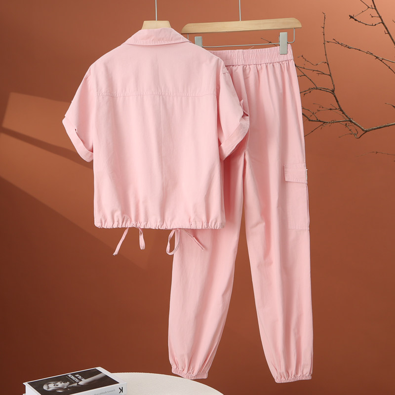 女夏季 套装 休闲工装 两件套 2026新款 小个子洋气减龄束脚裤 薄款 时尚