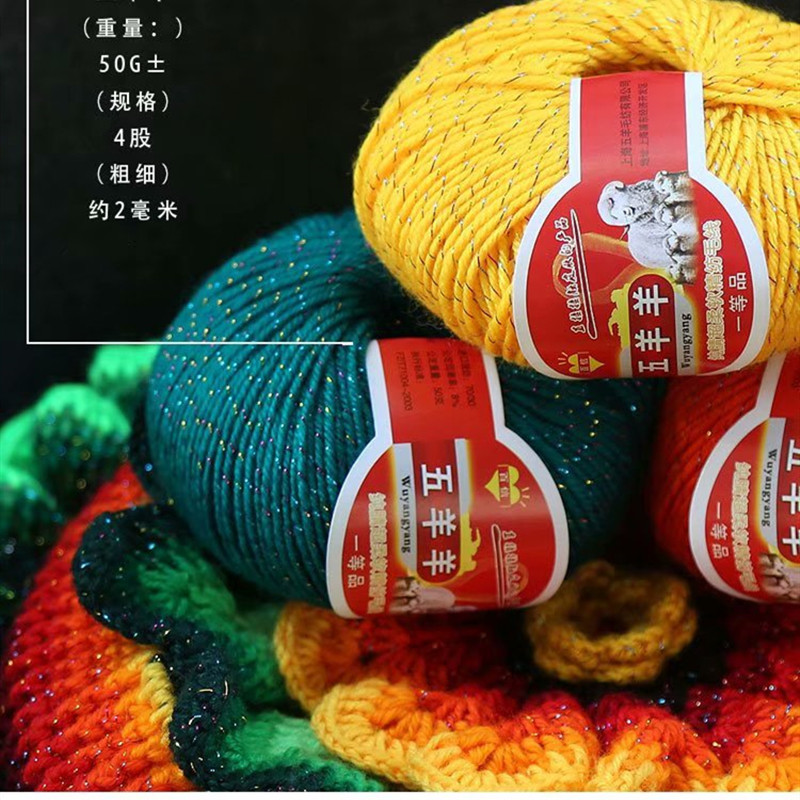 七彩金丝线纯晴纶团手工编织拖鞋 勾坐垫加彩丝腈纶中细毛线 棉鞋