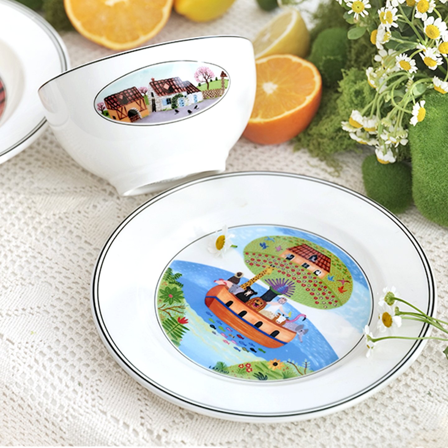 陶瓷碗盘勺套装 餐具家用吃饭碗盘饭可微波16件套 芭芭农场