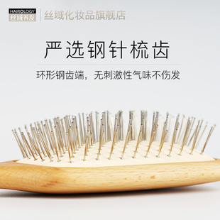 丝域养发原木顺发梳头皮按摩敲打梳子气垫木头梳子钢齿梳送礼女士由