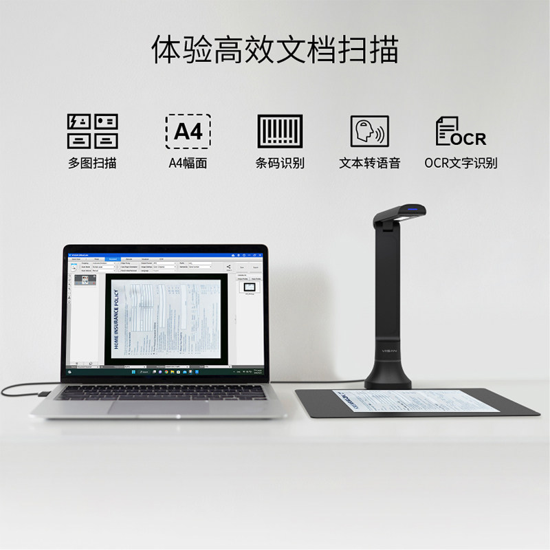 a3办公文件证件名片票据书籍成册高速连续扫描教学视频展台OCR图文字识别 维山VIISAN短臂高拍仪高清扫描仪a4由