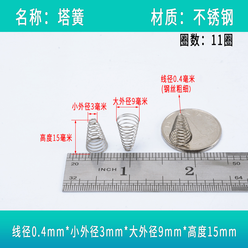 3.0 塔簧宝塔弹簧塔型大小头304不锈钢丝圆锥形压缩压黄负极电0.2