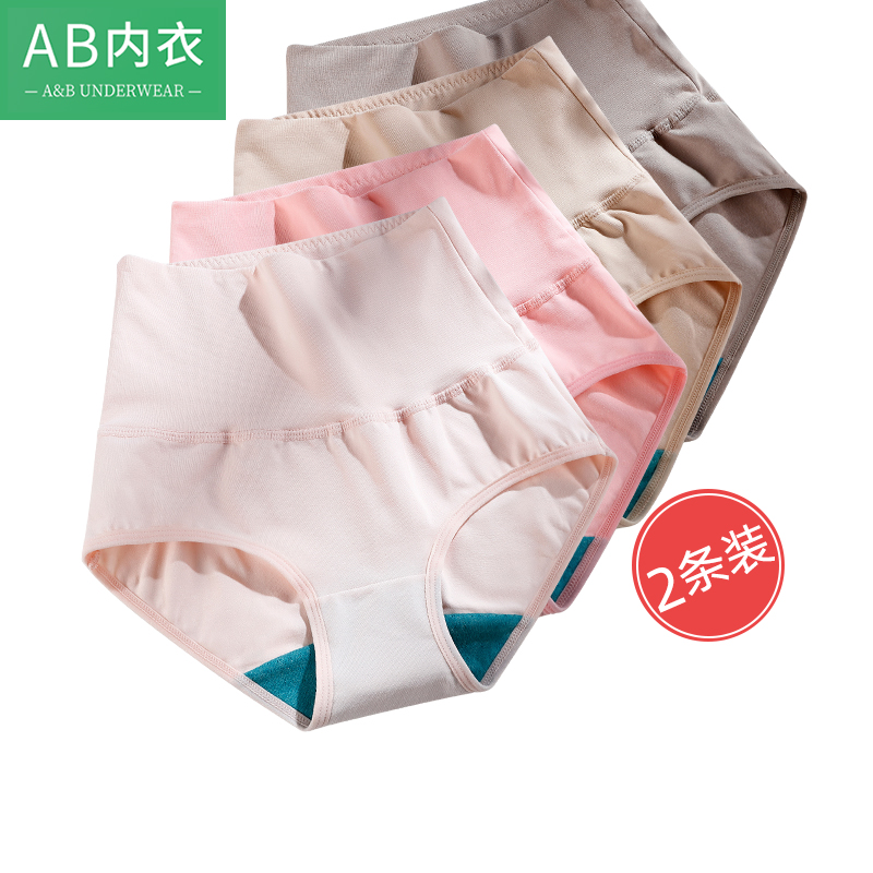 2条AB内裤 妈妈小平角裤 胖mm收腹提臀短裤 1880 女产后抗菌高腰大码