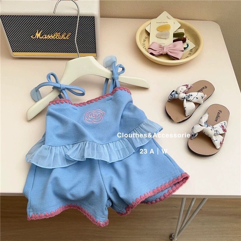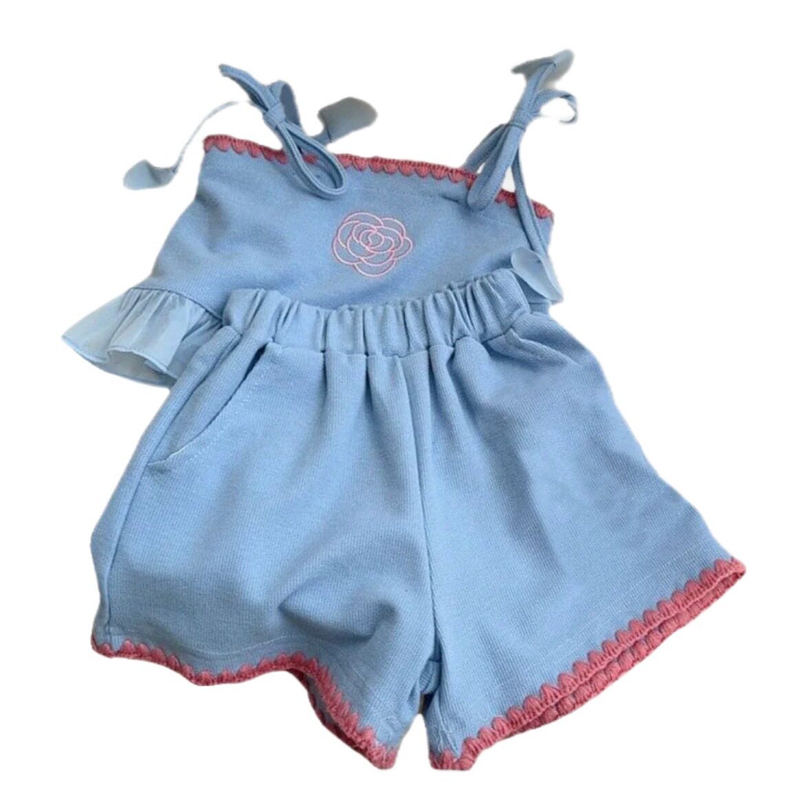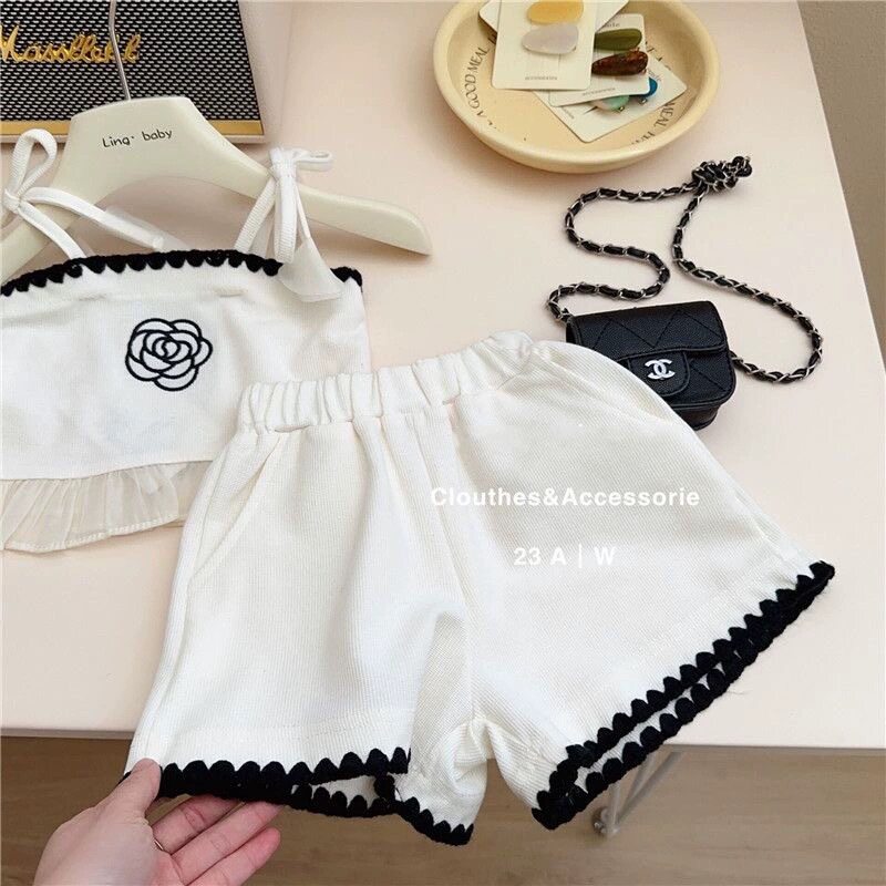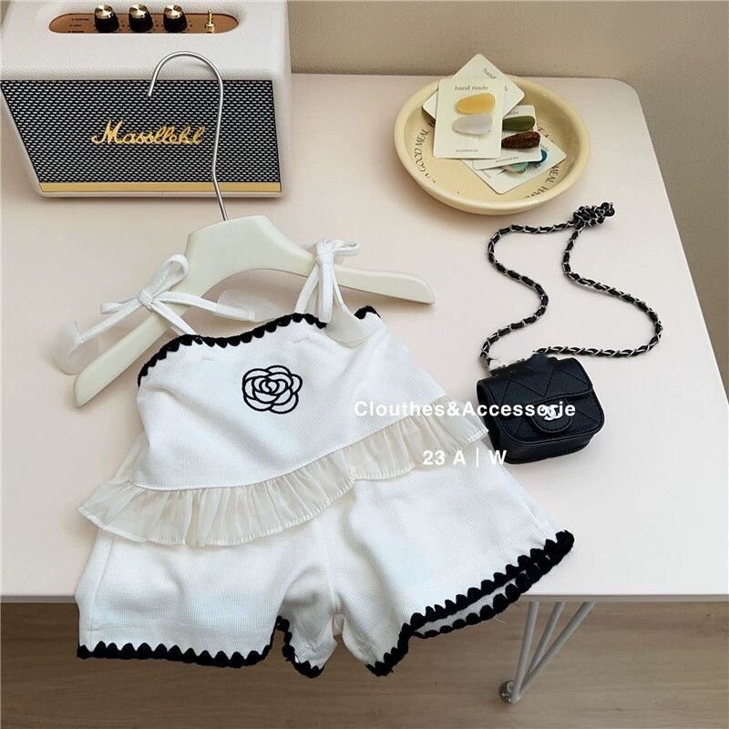 韩国童装 女童套装 洋气时髦纯色背心短裤 网红女宝宝两件套 2024新款