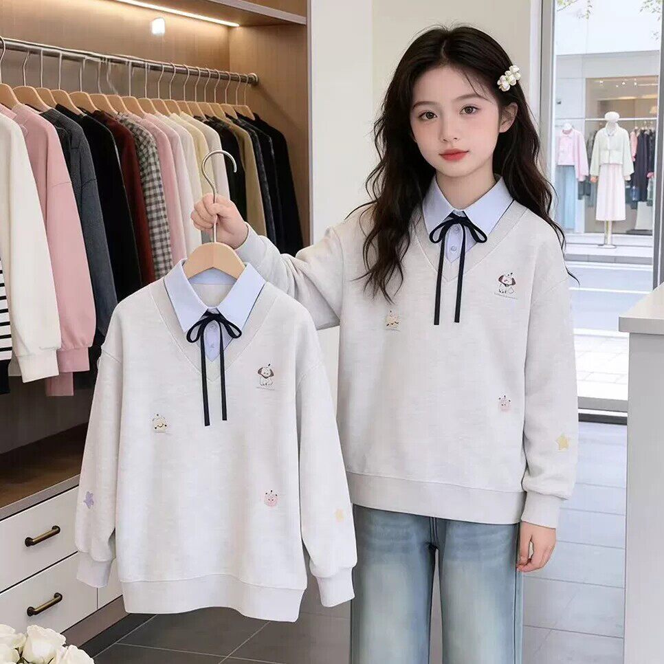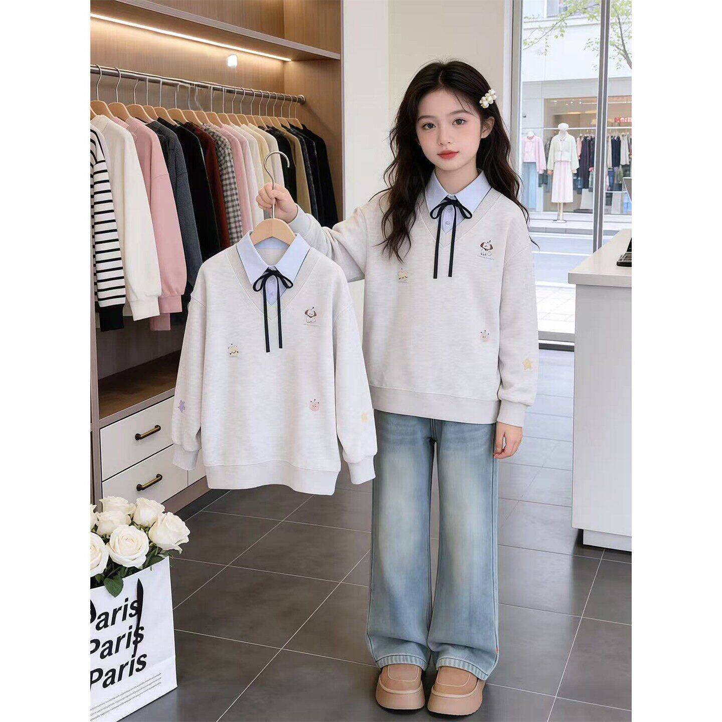 学院风假两件衬衫 中小学生韩系长袖 卫衣春装 女大童时尚 上衣 领春季由