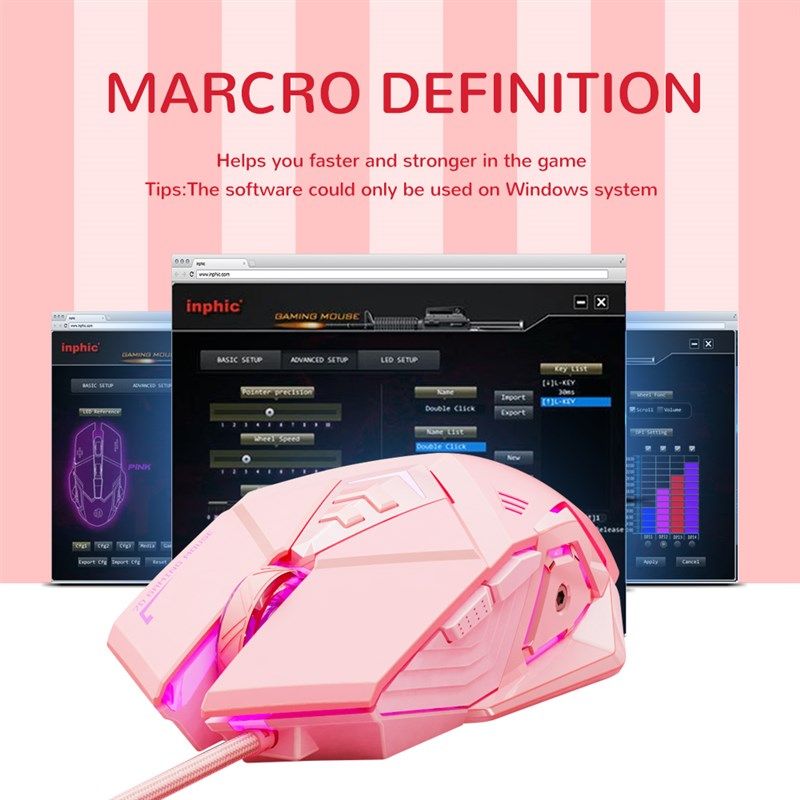 Pink USB Backlight Wired RGB Mouse Gaming Optical由