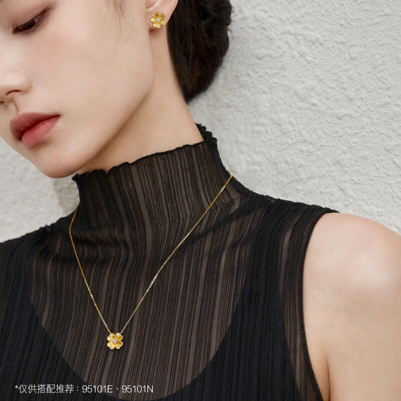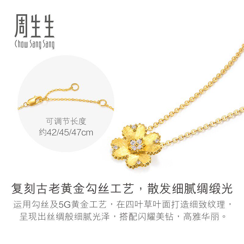 周生生华宇黄金金韵罗曼系列足金镶嵌钻石幸运之花项链95101N定价由