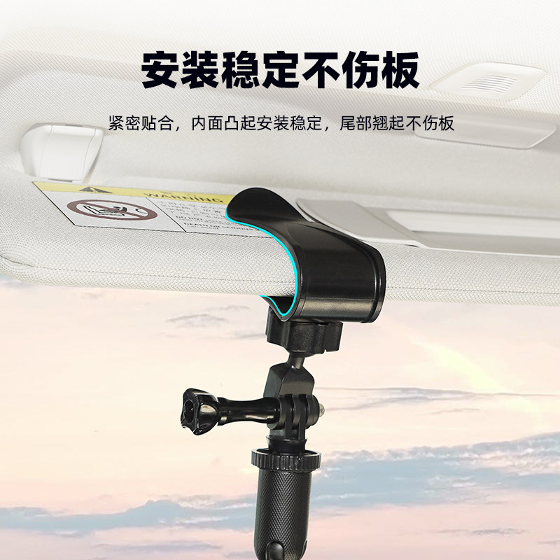 适用大疆Osmo 5Pro第一视角行车记录拍摄底座摄影配件 360汽车遮阳板支架全景运动相机车载固定夹大疆action4