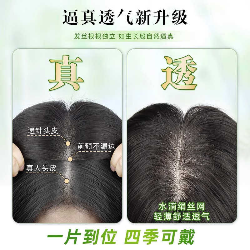 全真人头顶直发片垫发根高颅顶隐形无痕真发神器 瑞贝卡假发一片式