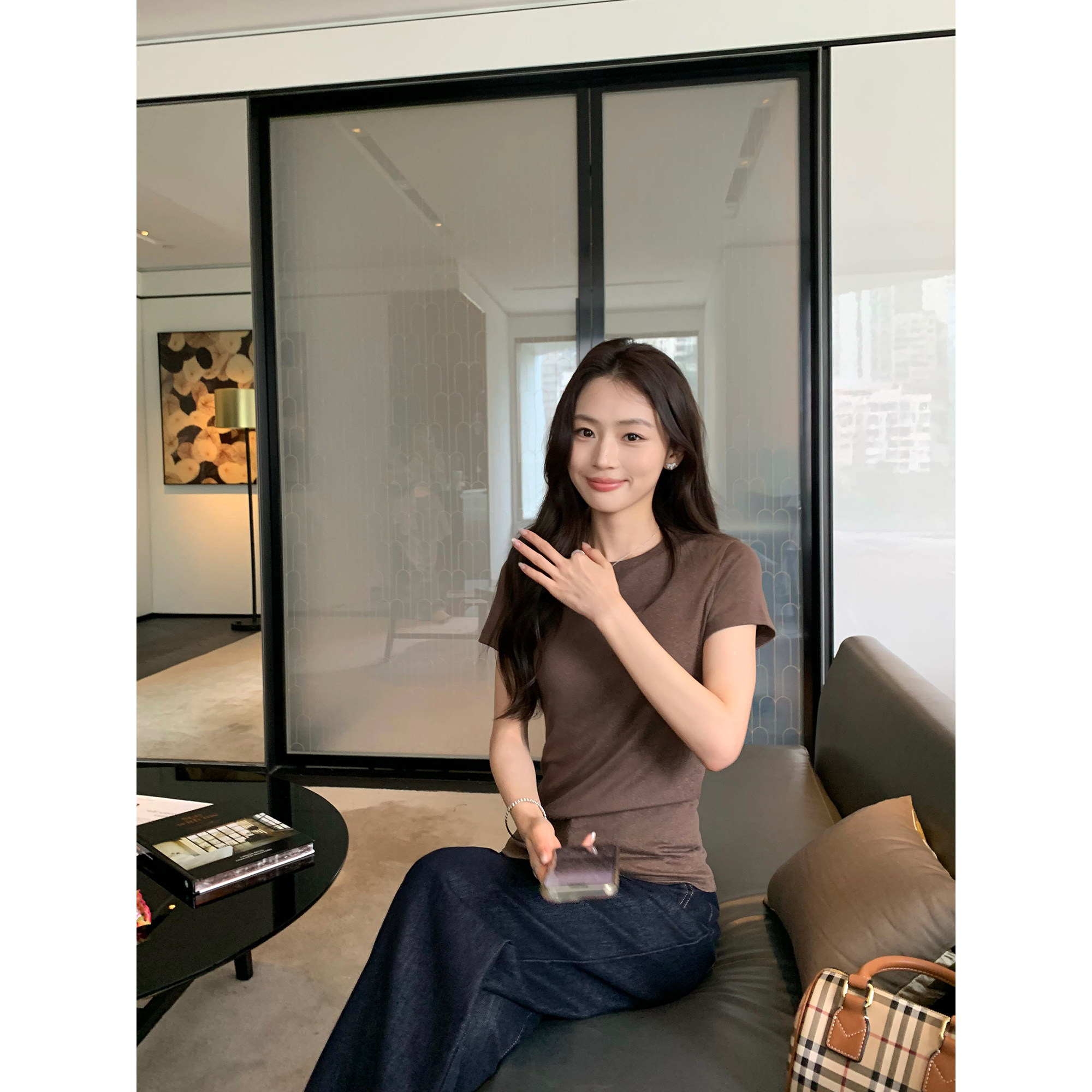 8折 新品 pusumede T恤女莱赛尔上衣 基础款 圆领短袖 瘦瘦佰搭t