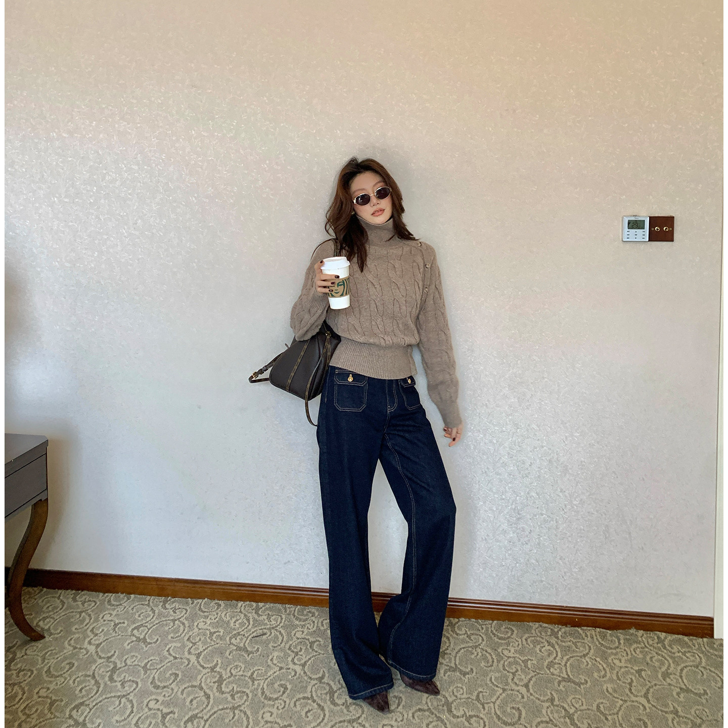 高腰显腿长女士直筒裤 J469 气质纯棉深蓝牛仔裤 AloneSavor龙喜儿