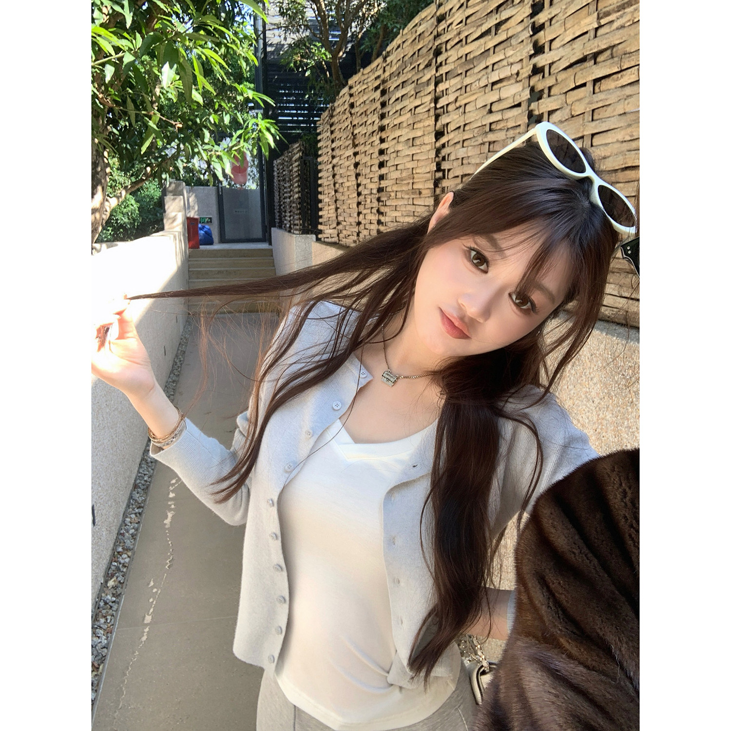 aaaaxbbb 风 羊毛针织开衫 外套V领吊带上衣纽扣圆领两件套 春禾季