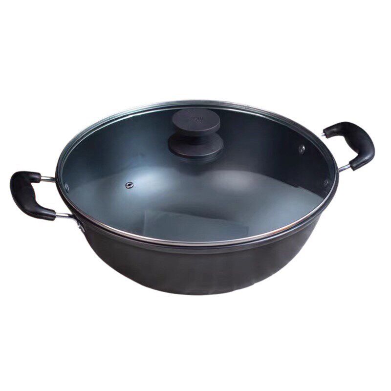 家用双耳大号生铁锅无涂层加深加厚不粘平底铸铁炖锅 真不锈老式