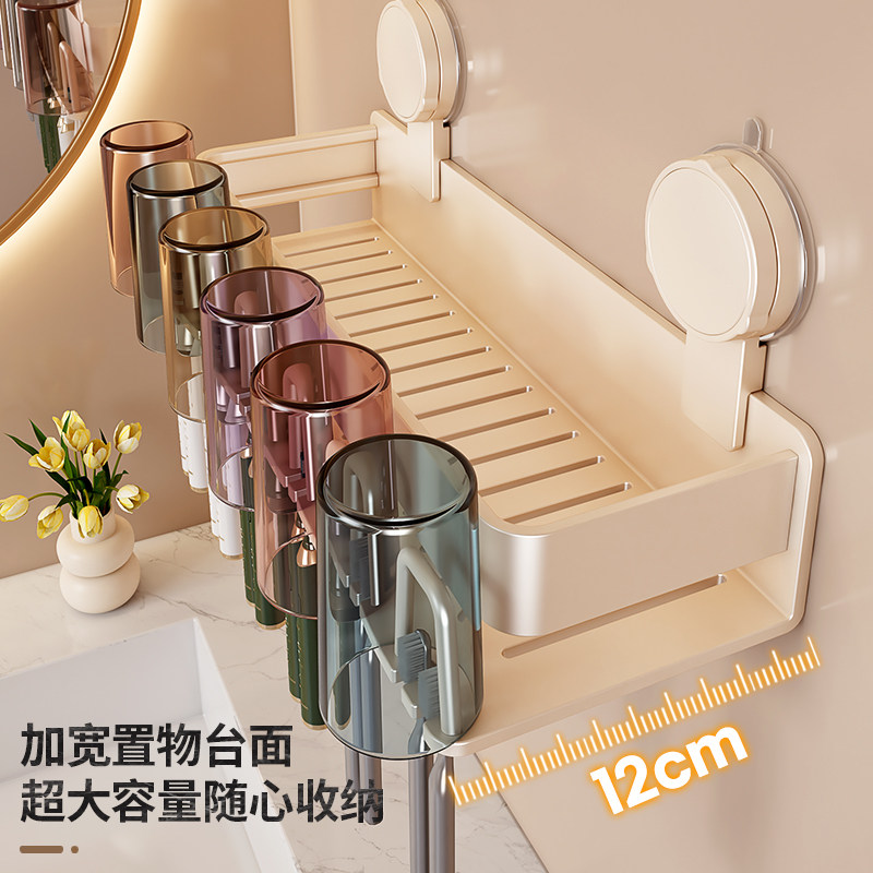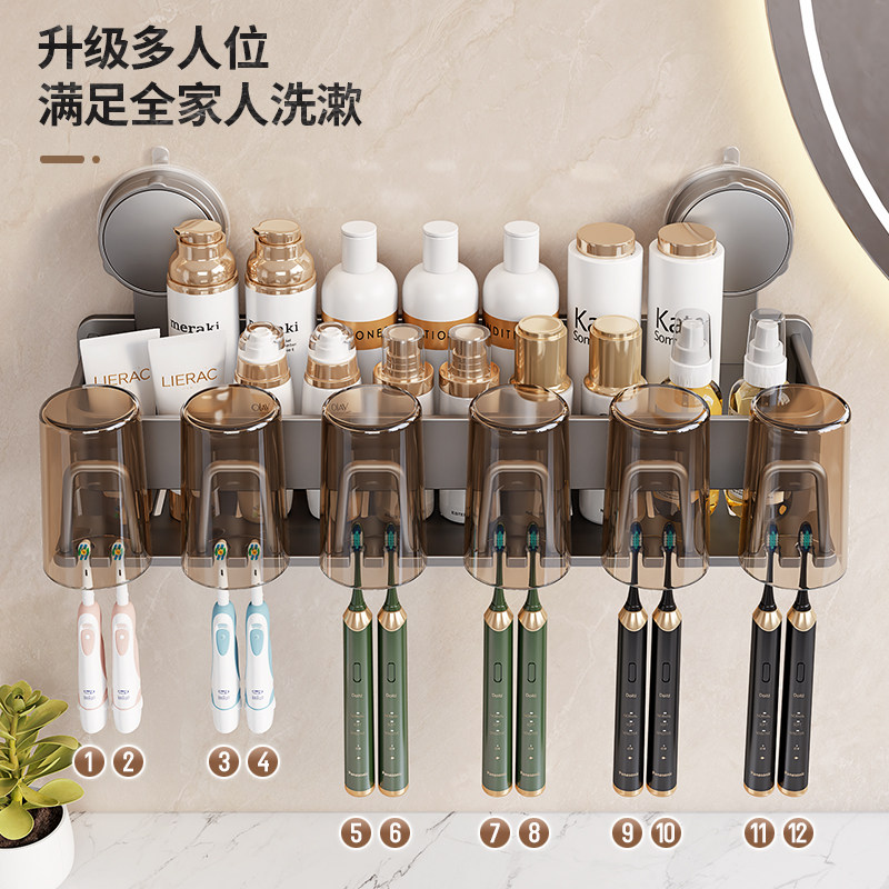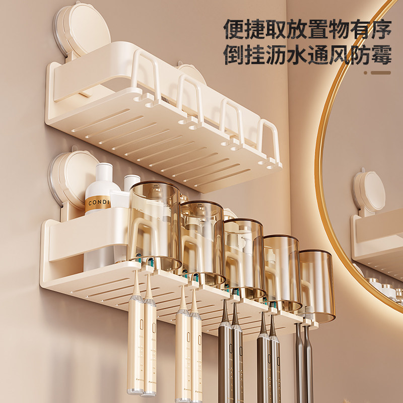 免打孔卫生间漱口杯电动牙刷化妆用品收纳架 吸盘牙刷置物架壁挂式