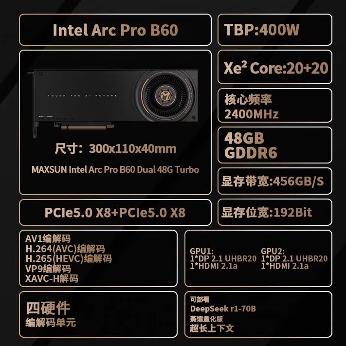 为您提供商品48G 铭瑄B60显卡 支持推理模型AI训练深度学习 B60 PRO Intel Arc的详细介绍,