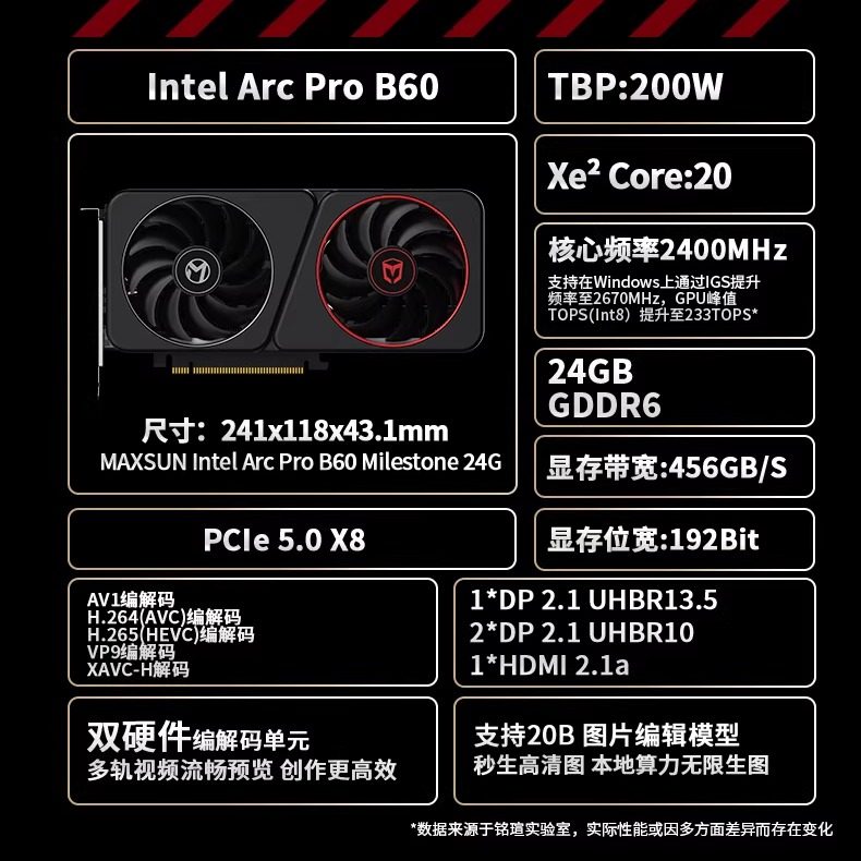 ⭐小红书推荐⭐Intel 48G Arc PRO B60 铭瑄B60显卡 支持推理模型AI训练深度学习,所属显卡分类,由淘宝网挑选推荐!小红书抖音网红同款!哪里有卖Intel 48G Arc PRO B60 铭瑄B60显卡 支持推理模型AI训练深度学习和多少钱质量怎么样✅。